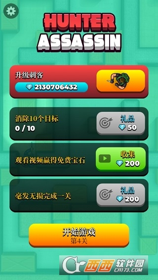 上帝视角,点击屏幕选择刺客移动路径,利用掩体等躲避灯光,击杀获取钻石解锁新刺客,基本就是这款游戏的主体。