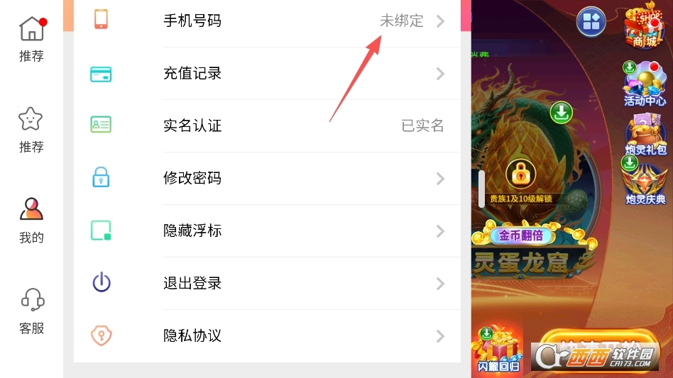 就能呼出系统菜单,第一个选项就是绑定账号,也就是绑定你的手机号了
