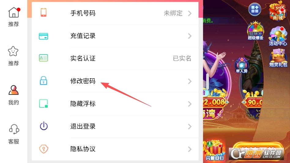 打开这个悬浮窗即可呼出菜单,去修改你的账号密码了
