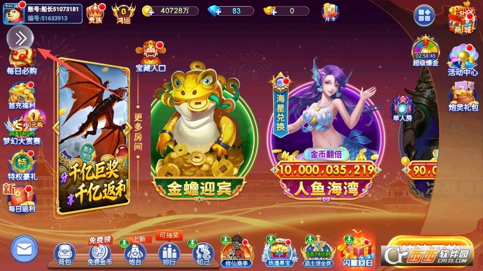 4. 及时升级炮塔,金币优先用于强化常用炮塔,提升威力与射速,后续再解锁新炮塔,避免分散资源,影响捕鱼效率;同时记得领取每日福利,积累足够金币,确保长期畅玩。