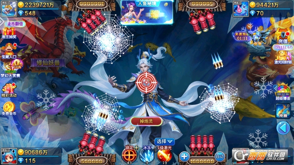 2. 根据鱼群类型选择合适的炮塔与炮弹,普通小鱼可使用基础炮塔,高倍大鱼与BOSS需切换高阶强力炮塔,搭配锁定、冰冻等道具,提高捕获成功率,避免盲目使用高倍炮台导致金币消耗过快。