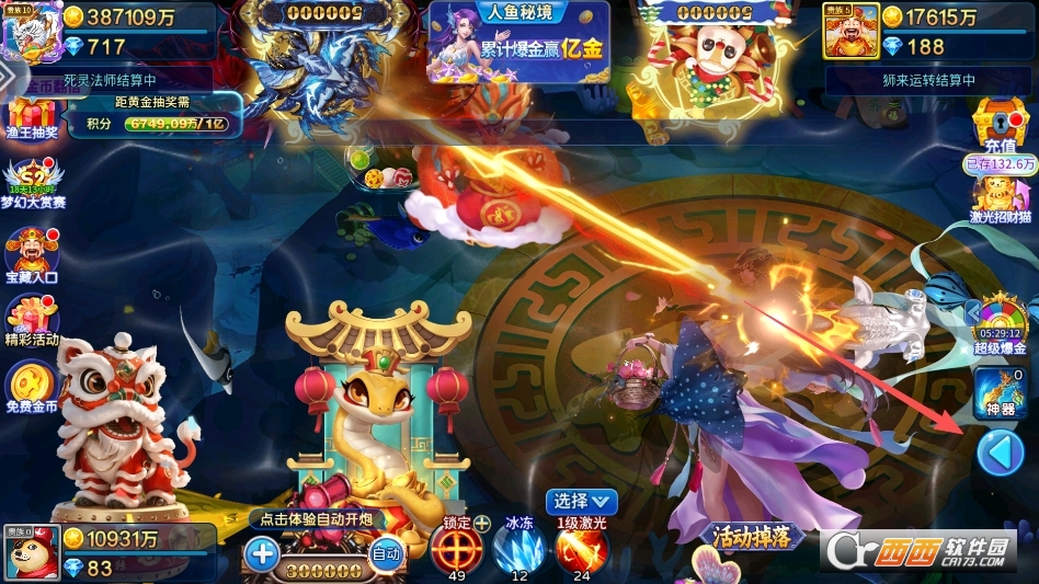 巨炮捕鱼2新春特别版877.1M0人在玩巨炮捕鱼2新春特别版是一款轻松休闲的街机捕鱼游戏,延续了经典的街机捕鱼玩法,采用全新的3D画面引擎打造,为玩家们带来一场趣味爽快的捕鱼体验 。新春版本全新