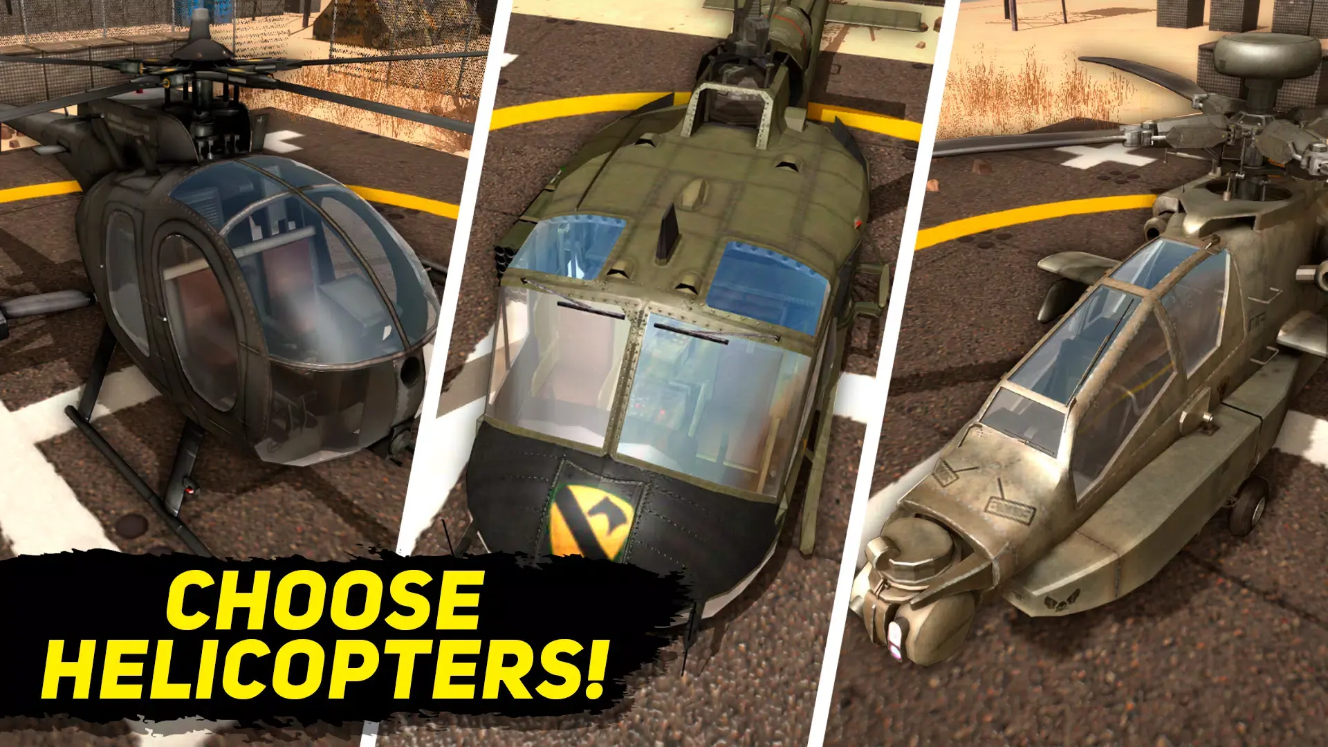 3. 赚取金币解锁新直升机并配备强大武器,选择战斗风格,以真实机型为灵感设计。