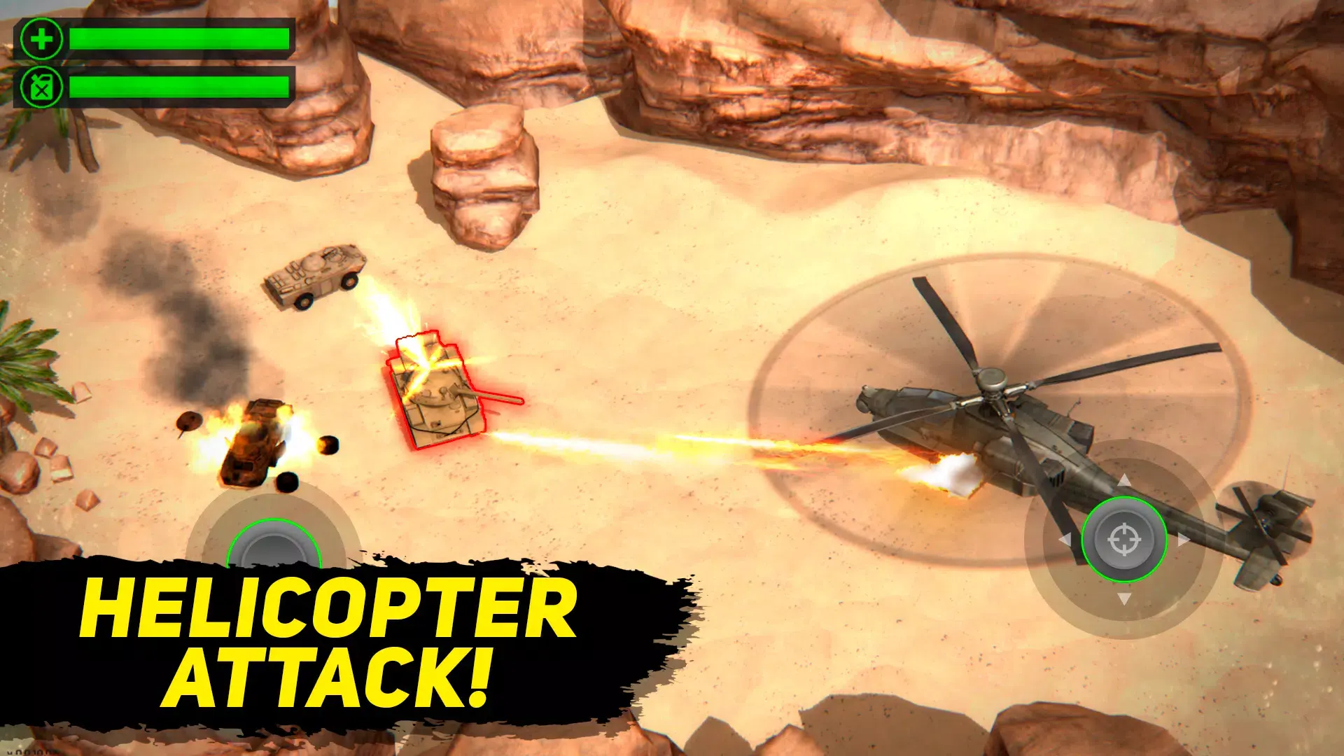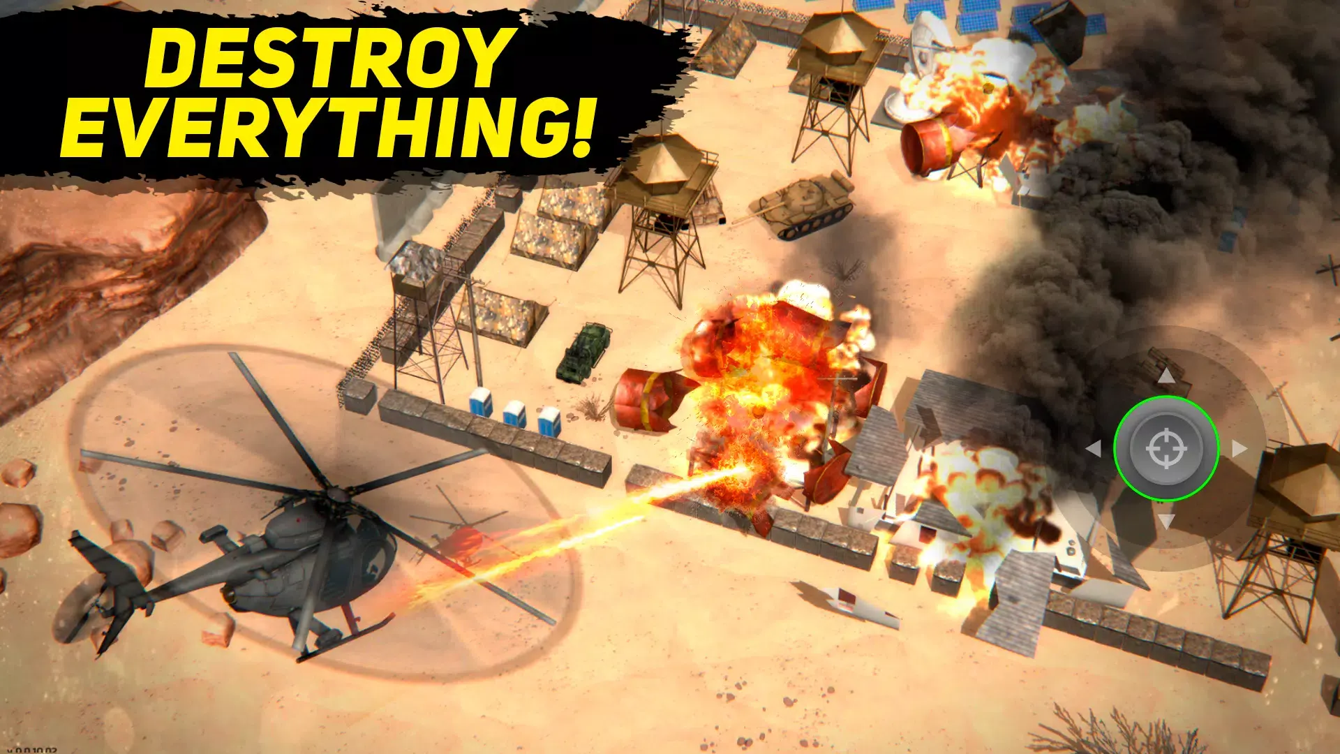 《沙漠直升机突袭3D》是一款动态射击游戏。玩家可操控以真实世界机型为灵感设计的战斗直升机,在逼真战争氛围中作战。能发动空袭、规划航线摧毁敌方基地,完成多样战斗任务。游戏完全离线,赚取金币解锁新直升机并配强大武器。有多种战斗风格可选,视角流畅,还有高级破坏系统。具备多样化军事任务、深度升级定制系统,带来身临其境的攻击体验,快来下载用直升机怒火席卷敌人。