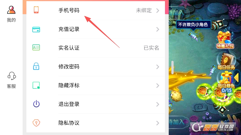 点击打开菜单,找到第一个选项就是绑定账号