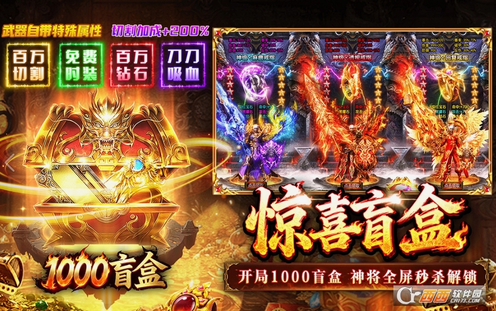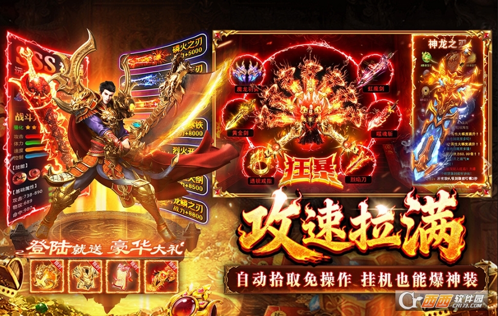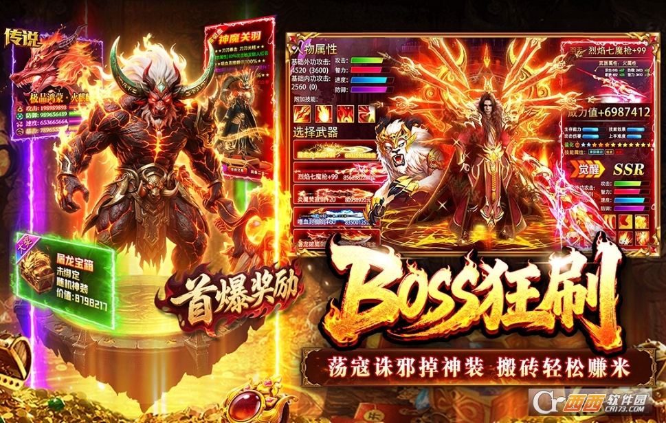 3、上手简单易操作,遍地BOSS,神装随便爆,红颜助战清屏快,稳定靠谱。