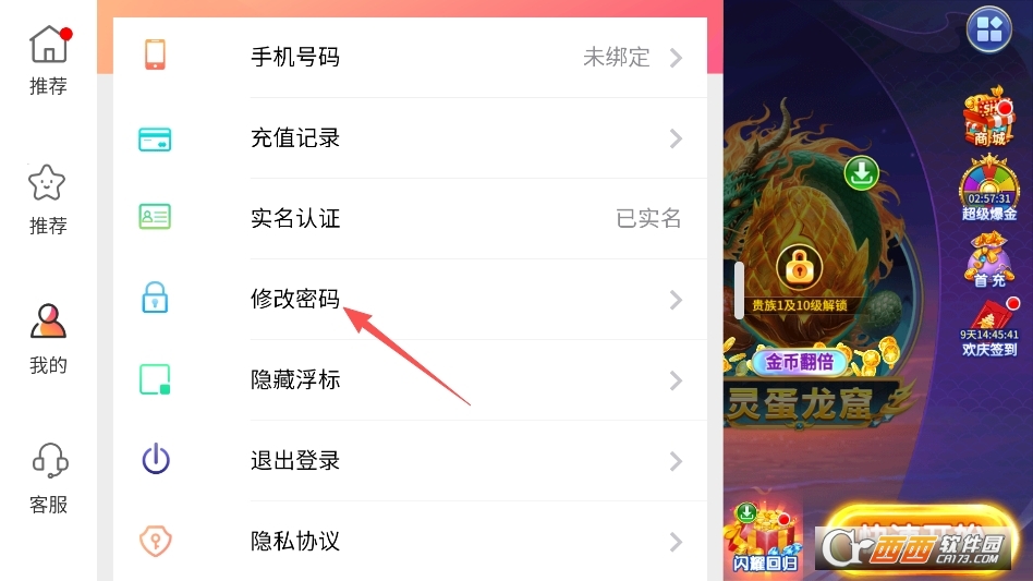 点击打开系统菜单,找到修改密码选项即可
