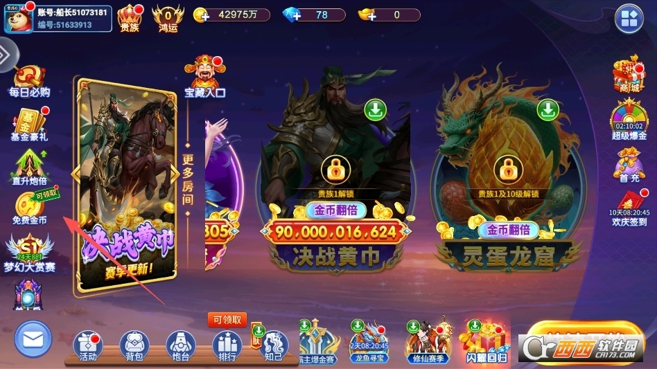 破产了也不用怕,点击主界面上的免费金币按钮