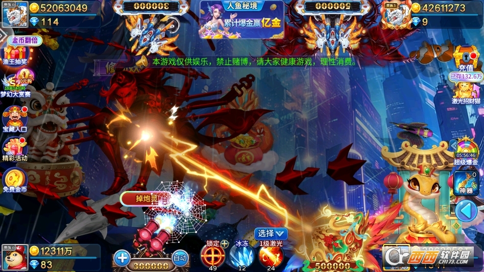 初期建议从低倍率炮台开始使用,熟悉不同鱼种的游动速度、血量与奖励倍率,优先瞄准鱼群密集区域或高价值稀有鱼,提升捕获效率与金币收益,切勿一开始就盲目使用高倍率炮台导致金币消耗过快。
