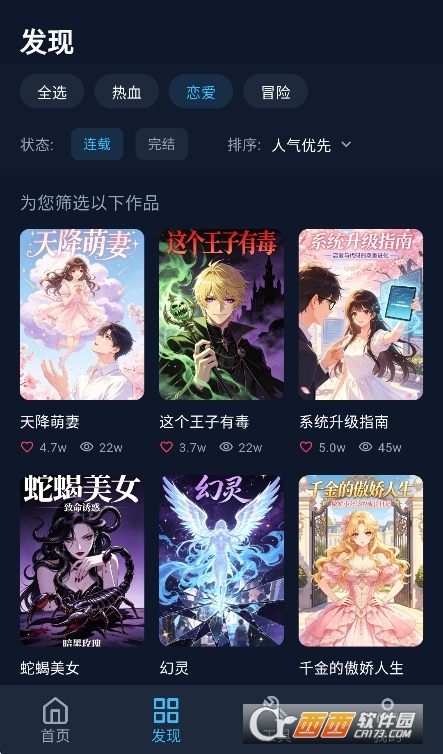 3、获得精彩的免费漫画类型选择