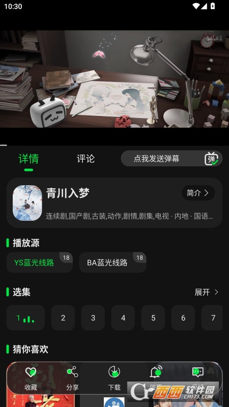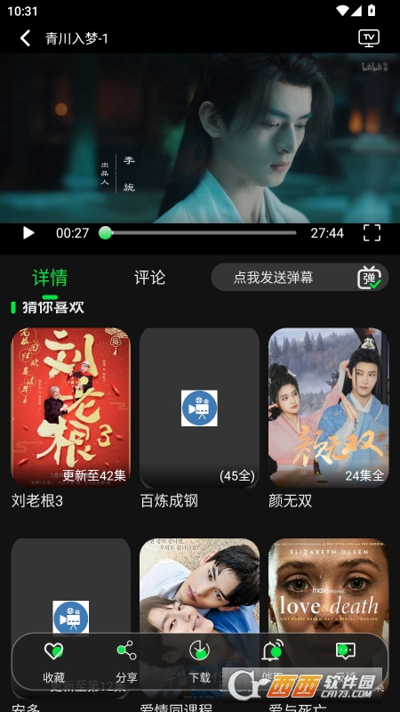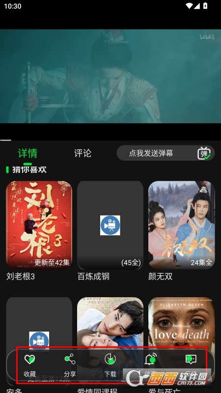 播放页下方提供各种收藏、下载之类的功能