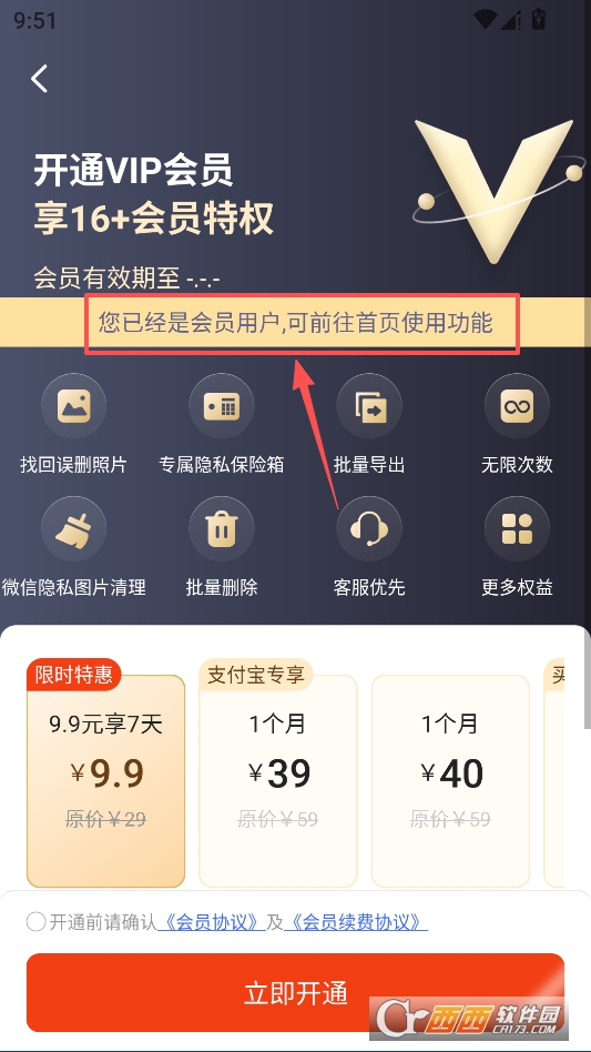 进入软件后点击主页右上角的VIP按钮