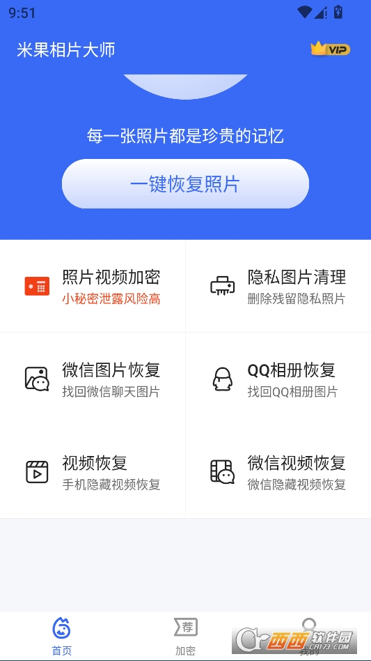 米果相片大师是一款轻量化、易上手的手机数据恢复工具,专门针对图片与视频恢复打造,适配绝大多数安卓手机机型,安装小巧、启动快速,运行稳定安全。软件不需要复杂权限与繁琐操作,打开后按照指引一键扫描手机存储,即可深度检索残留的照片、视频碎片,自动识别可恢复的完整文件。扫描完成后可以预览内容,确认是自己需要的文件再一键恢复保存,不会泄露个人隐私数据,也不会覆盖手机原有文件。