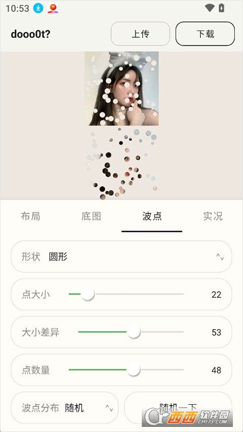 1. 波点艺术创作:搭载专属点阵式绘图内核,支持随机生成与自定义编辑双模式,可一键生成复古打孔机质感的波点图案,也能手动手绘、点绘编辑,用户可自由调整波点的大小、间距、颜色等参数,精准匹配个人创作需求。
