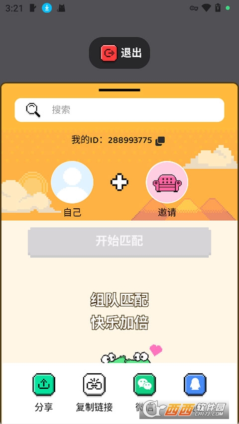 2、组队匹配就是自己可以邀请一些人进行匹配,邀请时分享链接或自己的id