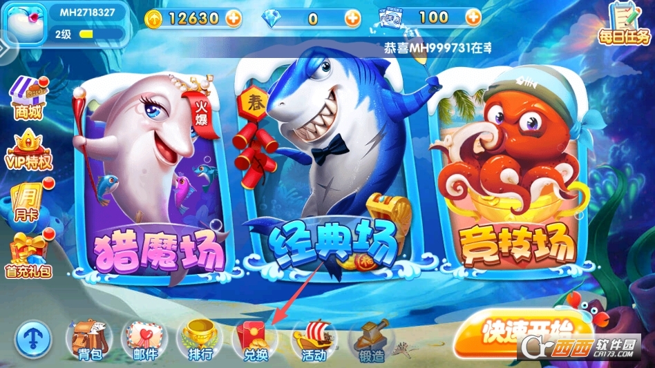 拥有多档位倍率渔场玩法,玩家可以根据自身金币实力,自由进入低、中、高不同倍率房间,倍率越高奖励金币越丰厚。