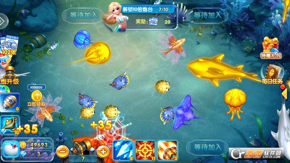 姚记捕鱼顶富版77.9M0人在玩姚记捕鱼顶富版震憾来袭,超豪华新人福利搭配超高倍率的炮台与奖金,让玩家不仅能够领取充足的捕鱼资金,更能在渔场内轻松一炮赚取百万金币。全新3D画面引擎加持