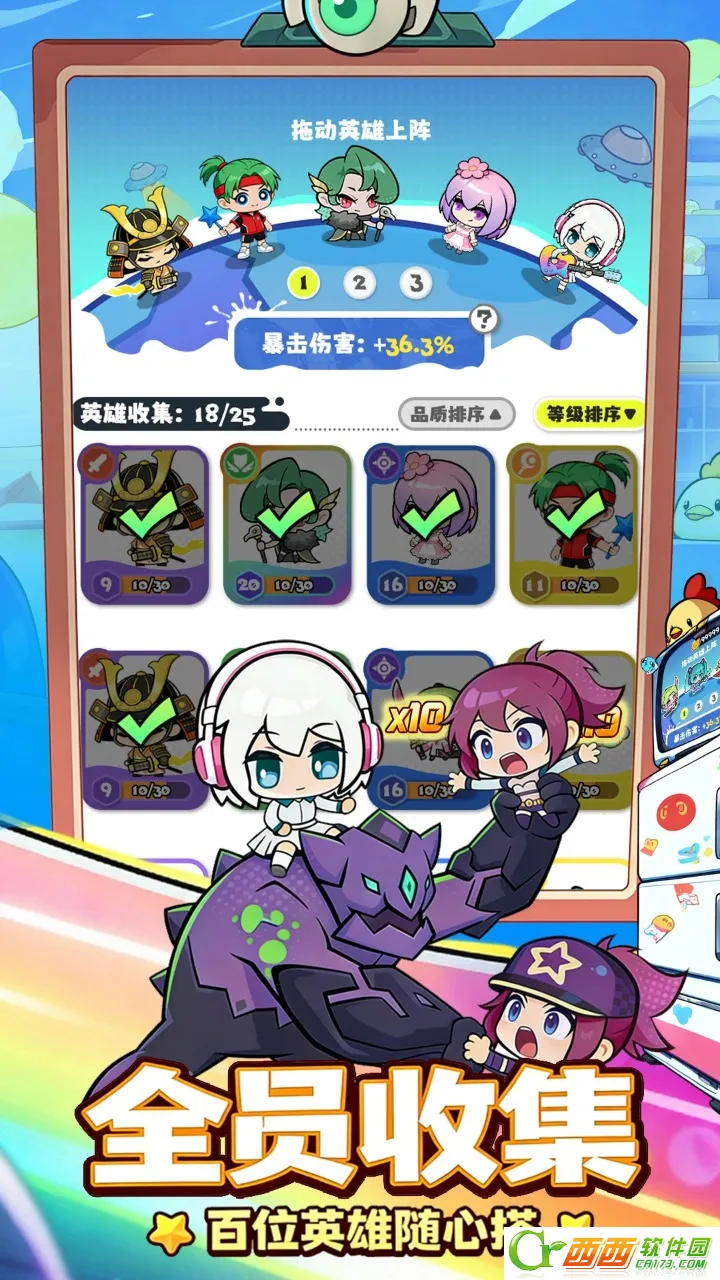 4. 战斗中可随机召唤英雄,通过合并强化提升战斗力。