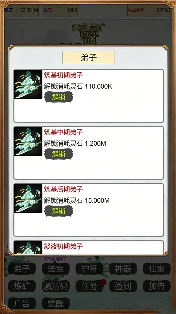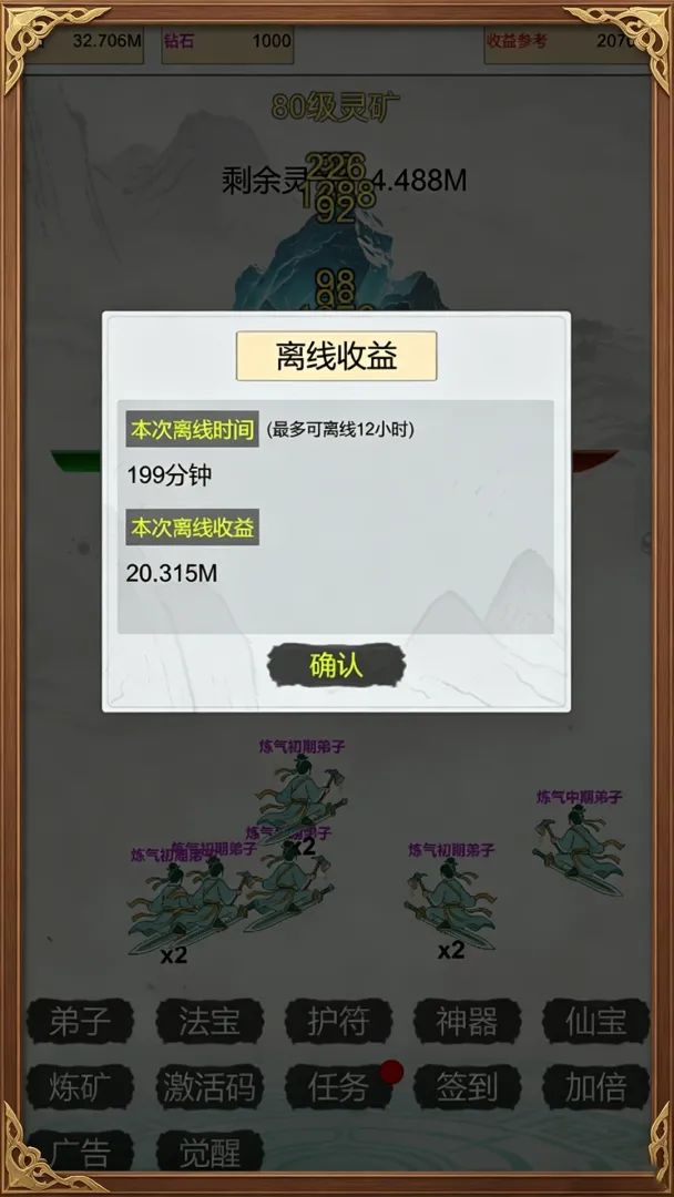 4. 轻松挂机成长:设计丰富挂机系统,离线弟子自动挖矿,持续积累资源,实现从矿奴到矿王的逆袭。