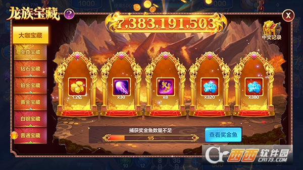 当玩家捕获的奖金鱼和特殊鱼达到一定数量时,就可以获得开启宝藏的机会,随机获得大量的金币、钻石或道具。