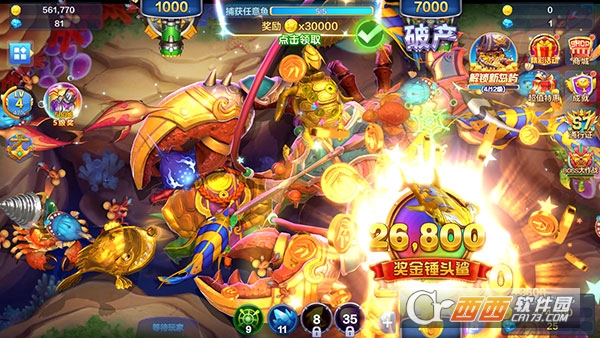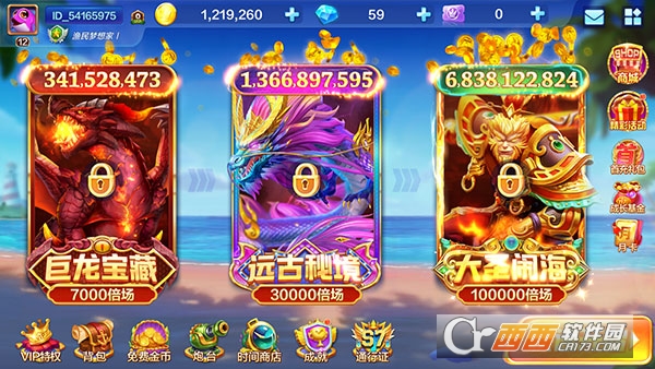 1、多模式渔场:从“浅海乐园”到“深渊龙宫”共12个主题渔场,每个渔场拥有独特的鱼种、BOSS和事件机关(如冰冻、暴击炮台)。