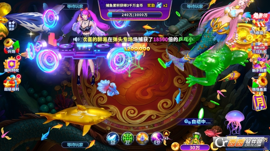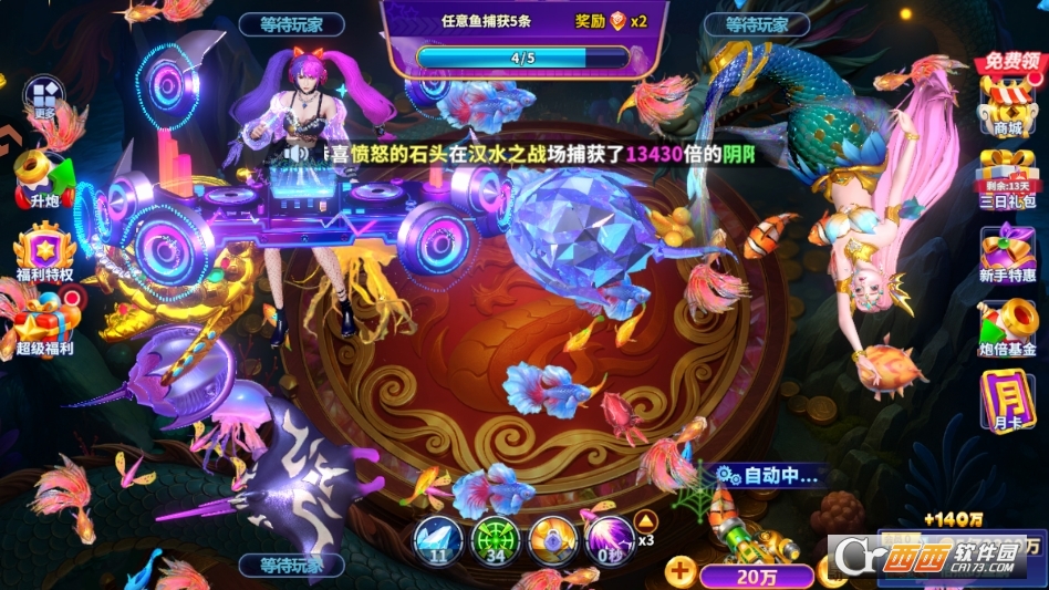 游戏福利非常多,是同类捕鱼里福利力度很足的一款。新手上线即可领取专属新手大礼包,包含大量免费金币、强力弹头道具与炮台体验奖励,开局就能拥有充足资源畅玩。