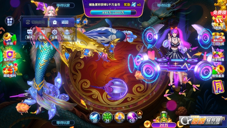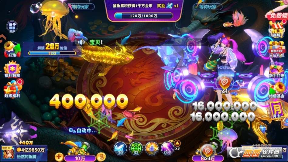 首先道具体系十分完善,冰冻、锁定、狂暴三大核心道具功能独特,战略性极强,不再是单纯盲目开炮,关键时刻使用就能直接扭转战局,捕鱼趣味性和策略性大幅提升。