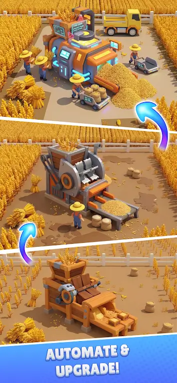 1. 这是一款卡通风格的闲置农场模拟游戏,玩家从金黄色小麦田起步,发展农业产业链。