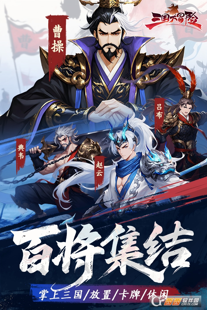 三国大冒险是一款新国风三国卡牌手游。玩家可化身主公,集结三国名将,过关斩将收复城池,成就一统霸业。能招募养成经典武将,打造强力阵容,沉浸式重温三国战役。有轻松休闲的放置挂机玩法,推图攻城自动获取养成资源,告别爆肝零氪金。福利丰厚,上线送经典名将与海量抽卡券,助力战力飙升,带来十足爽感。