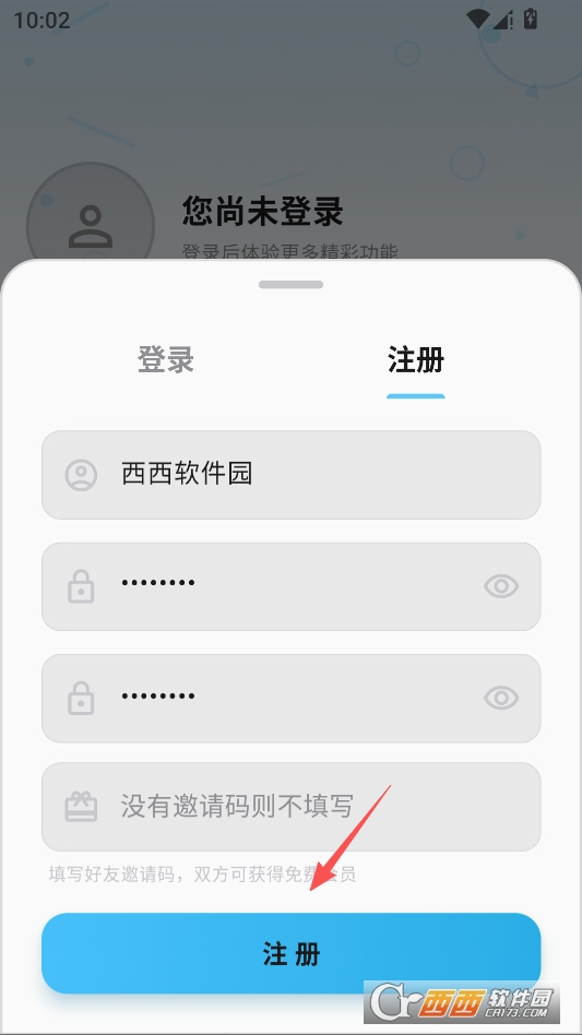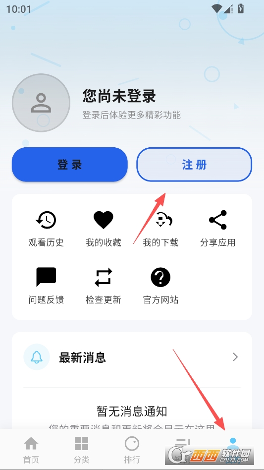 首先我们打开软件点击右下角我的,来到个人中心点击注册登录