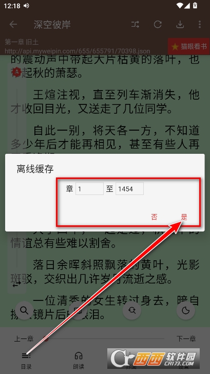 6.输入我们想要离线缓存的起始和最终章节,然后点击是就好了。