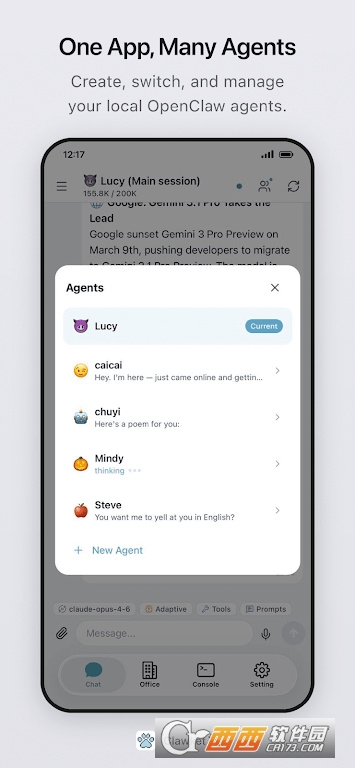 4.AI交互与会话管理:支持实时流式聊天(打字机效果),可收发图片、渲染Markdown格式内容,具备代码高亮功能;支持多智能体创建与切换,可根据需求设置不同功能的AI助手,同时具备会话管理、离线消息缓存功能,断网后可查看历史消息,网络恢复后自动同步。