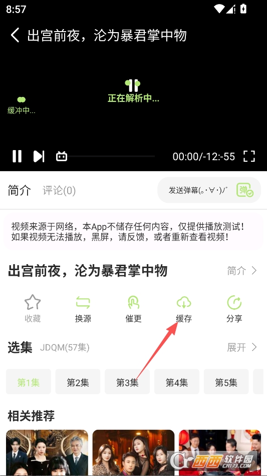 打开进入短剧播放页之后,再点击中间的下载按钮