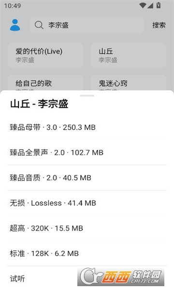 2、点击搜索框,输入歌名/歌手/专辑,支持文字和语音搜索。