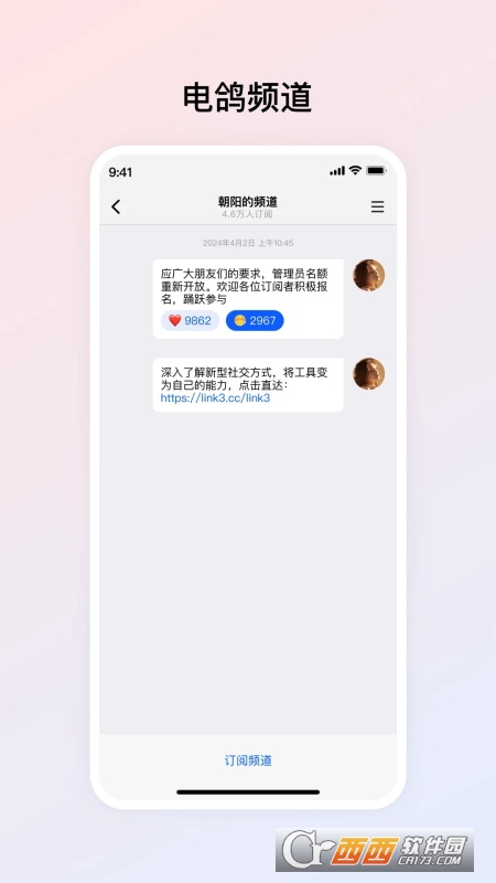 电鸽是一款专注于大群通讯的专业聊天应用,核心定位为“超大群组沟通+高效信息管理”,打破传统通讯软件的群人数限制,支持创建超过5000人的超大群组,适配企业团队沟通、社群运营、大型活动组织等多种场景。软件具备稳定、低延迟的信息传递能力,支持文字、语音、图片、文件等多形式消息同步发送,同时搭载自定义频道、好友互动、群管理等多元功能,既能满足大规模群体的高效沟通需求,也能实现兴趣、行业、商业等主题的精准聚合,是一款兼顾实用性与便捷性的专业通讯工具。