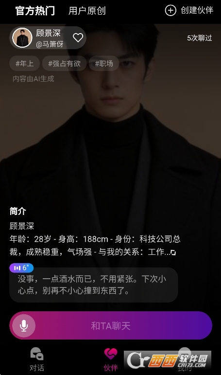 梦郎AI聊天软件安卓版是一款非常精彩的AI聊天应用,提供丰富多样的AI人设与背景设定。你可以从众多特色AI角色中选择心仪的对象展开对话——温柔学长、傲娇少年、霸道总裁、治愈系男友……每一位都拥有独立的性格、语音和故事线。通过灵活自然的对话互动,体验不同的故事发展,在轻松的聊天氛围中寻找情感放松,探索更多样的恋爱玩法。各种精彩应有尽有,欢迎感兴趣的小伙伴们前来尝试体验!