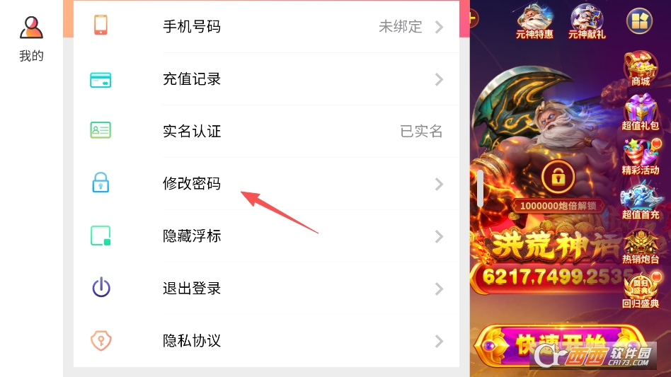 呼出菜单,再点击修改密码选项即可