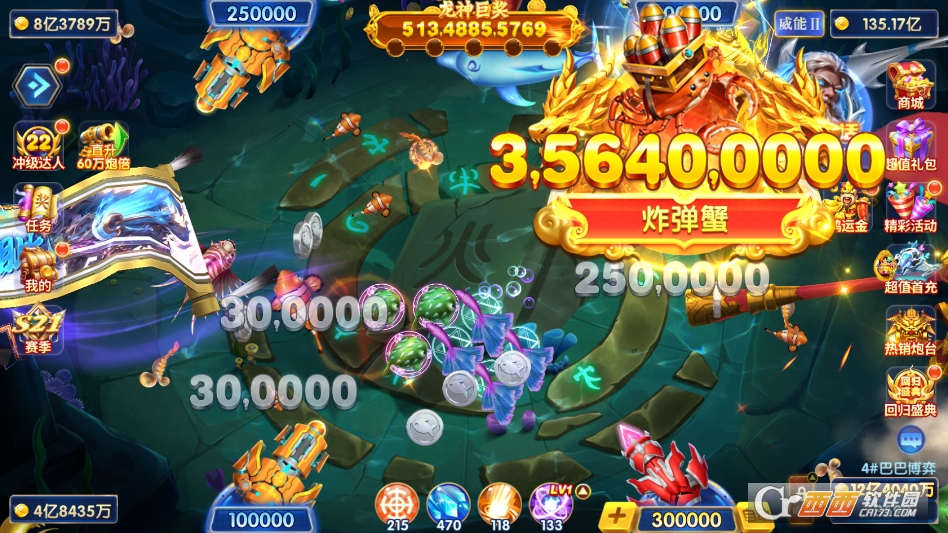 1.基础捕鱼操作:玩家操控炮台,滑动屏幕调整瞄准角度,点击屏幕发射炮弹捕获游动的鱼群,不同鱼种对应不同分值与捕获倍率,稀有鱼种与BOSS的奖励更为丰厚。炮台支持多档位倍率自由调节,低倍炮适合稳捕小鱼积累金币,高倍炮可专攻高价值鱼类与BOSS,炮弹支持无限反弹,可利用反弹机制提高命中率,普通炮击也能触发高倍暴击,满屏爆金爽感拉满。
