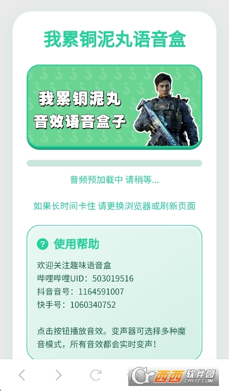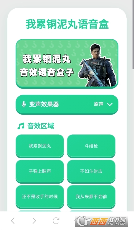 我累铜泥丸语音盒app安卓版是一款最新上线的趣味语音应用,其名称源于热门游戏《三角洲行动》中彦祖联动皮肤的经典台词“我来同你玩”。这句略带口音的魔性台词迅速成为三角洲玩家之间的热门口头禅和社交梗,被网友们戏称为“我累铜泥丸”。本软件正是基于这一网络热梗打造,收录了大量语音特效、经典台词和热门音乐,用户点击即可免费播放和使用。