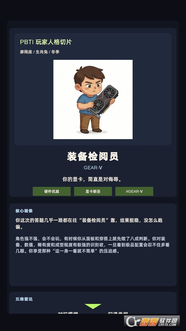 垂直精准:聚焦游戏玩家群体,区别于通用人格测试,测评维度更贴合游戏场景,结果更具参考性。