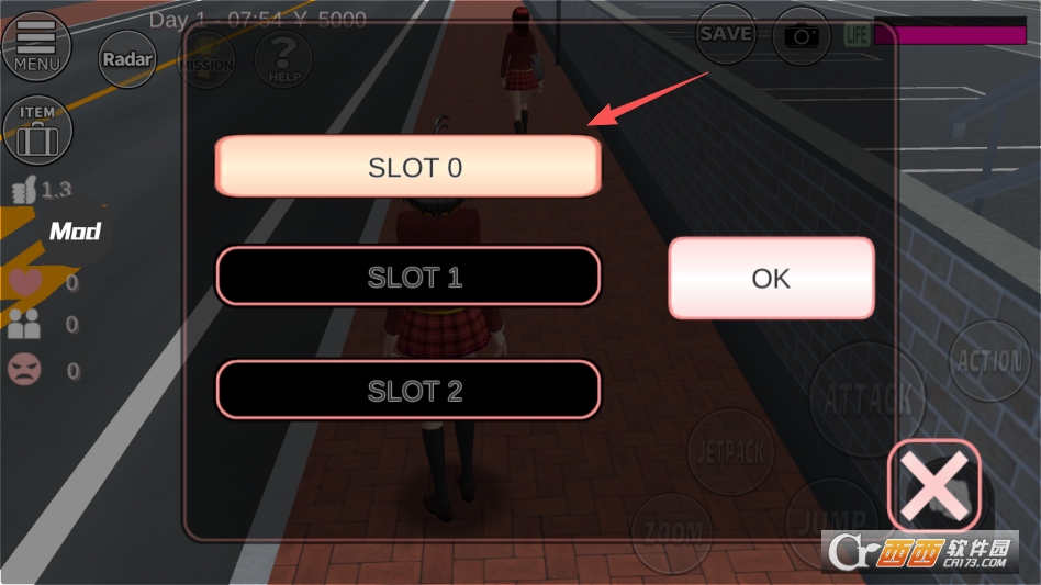 然后选中一个存档槽,点击OK即可存档