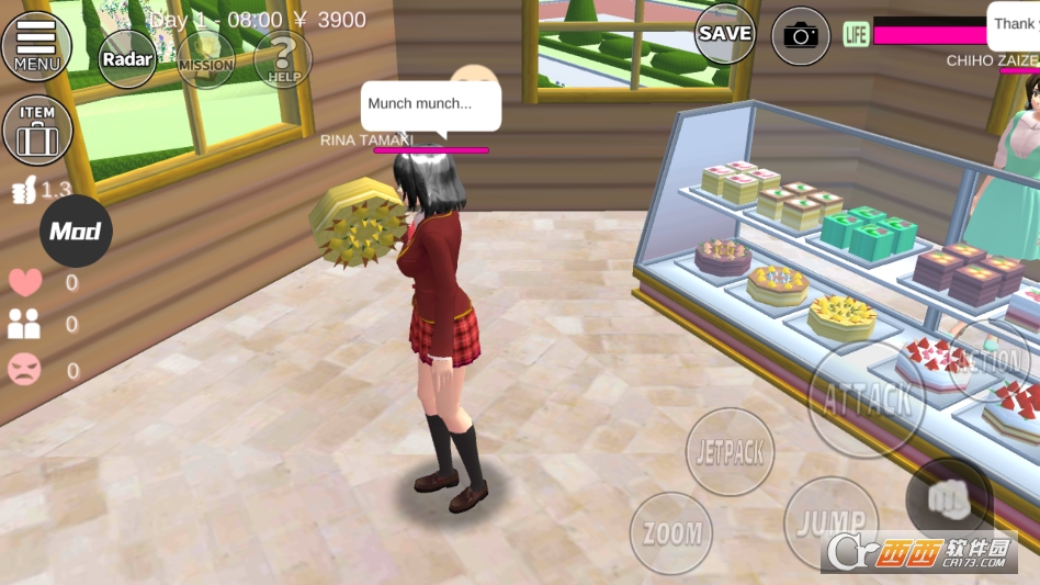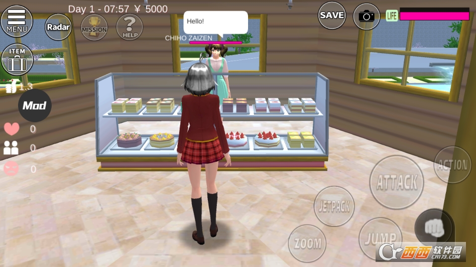 樱花校园模拟版的自由度非常高,是同类校园模拟游戏里自由度拔尖的作品。