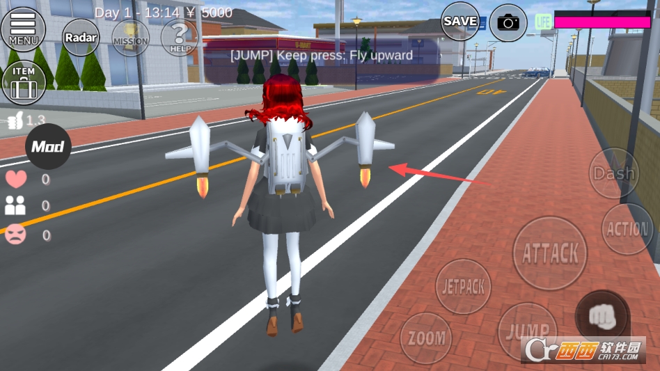 看到装备上喷气背包之后长按跳跃键