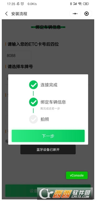 该步骤为手机与OBU利用蓝牙建立通信,自动搜索电子标签,需等待片刻。激活成功后会弹窗提示连接成功。