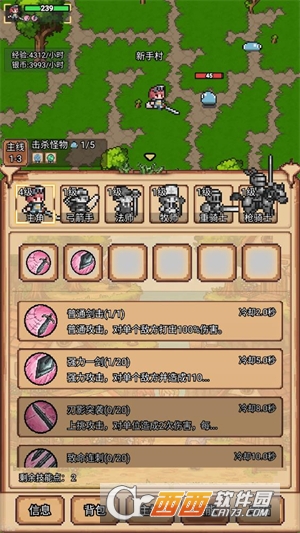 4、点击技能按钮可以让你的英雄学习不同的招式,每次升级都会获得一个技能点用来学习技能