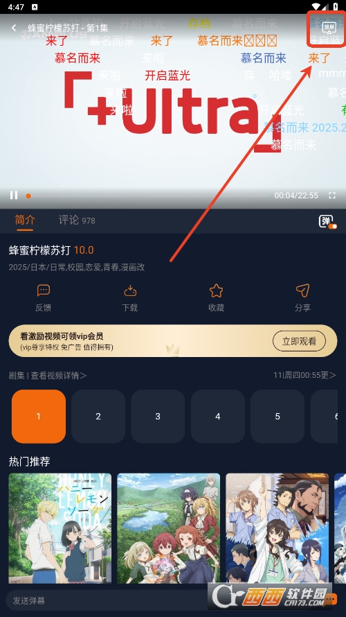 1、进入观看一部动漫,点击右上角的TV投屏按钮。