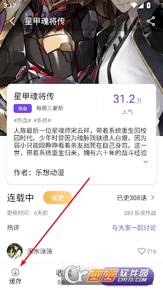 2、在漫画详情界面点击左下角的按钮缓存漫画