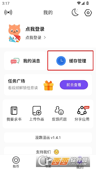 3、可以在“我的”界面点击“缓存管理”查看缓存的漫画