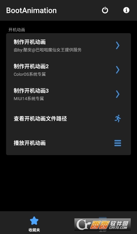 开机动画修改器(BootAnimation)官方版是一款游戏的开机动画修改器软件,内置超级丰富的开机动画效果素材,支持选择,提供丰富的修改器功能,非常好用,支持时间、动态以及更多修改服务,感兴趣的小伙伴们欢迎来下载试试吧。