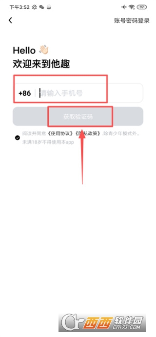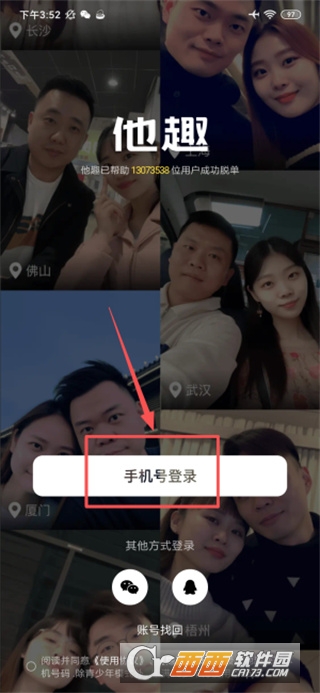 2、在这里找到手机号登录按钮并点击跳转至填写页面。